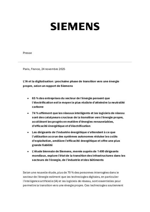 Selon une nouvelle étude, plus de 70 % des personnes interrogées dans le secteur de l'énergie estiment que les technologies digitales, en particulier l'intelligence artificielle (IA) et les logiciels de réseau, sont essentielles pour permettre la transition vers une énergie propre. Ces technologies soutiennent l'intégration des énergies renouvelables, la transition vers l'électrification et l'optimisation de l'efficacité énergétique, qui sont toutes essentielles pour réduire l'utilisation des combustibles fossiles.