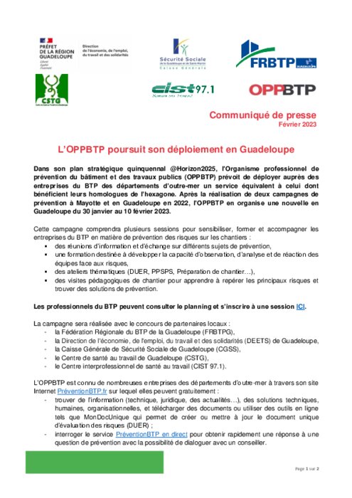 L’OPPBTP poursuit son déploiement en Guadeloupe