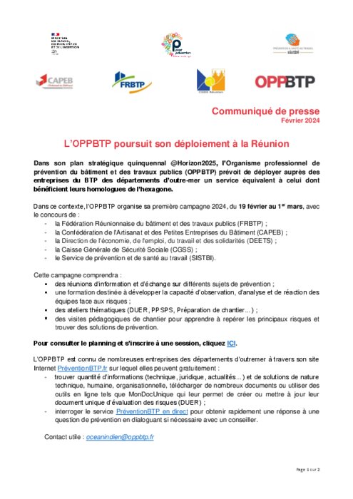 Dans son plan stratégique quinquennal @Horizon2025, l’Organisme professionnel de prévention du bâtiment et des travaux publics (OPPBTP) prévoit de déployer auprès des entreprises du BTP des départements d’outre-mer un service équivalent à celui dont bénéficient leurs homologues de l’hexagone.