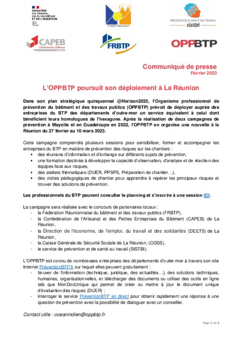 prévention à Mayotte et en Guadeloupe en 2022, l’OPPBTP en organise une nouvelle à la