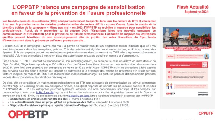 L’OPPBTP relance sa campagne de prévention sur l’usure professionnelle