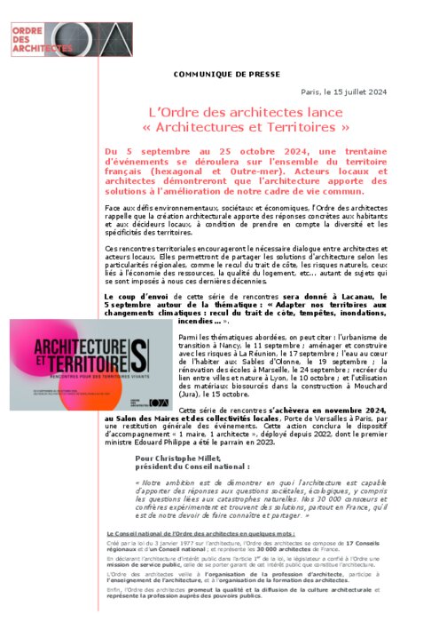 L’Ordre des architectes lance « Architectures et Territoires »