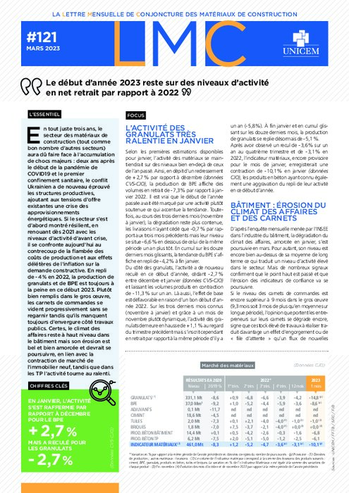 Matériaux : le début d'année 2023 en net retrait par rapport à 2022 (lettre Unicem)