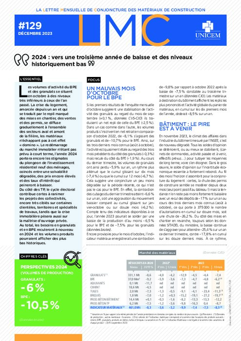 Matériaux : Vers des niveaux historiquement bas en 2024 (UNICEM)