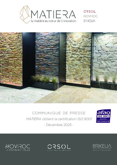 Matiera, spécialiste et fabricant de parements muraux, est fier d’annoncer l’obtention de la certification ISO 9001, la norme internationale de référence en matière de management de la qualité. Cette reconnaissance officielle vient couronner l’engagement constant de l’entreprise en faveur de l’amélioration continue, de la satisfaction client et de l’excellence opérationnelle.