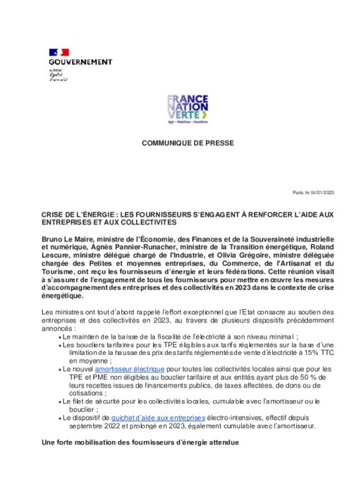 La plupart des fournisseurs d'énergie s’étaient déjà engagés dans une charte signée en octobre 2023 qui comprend 25 engagements pour aider les consommateurs professionnels à faire face à la crise énergétique. Les fournisseurs ont réitéré leur attachement à cette charte et leur engagement formel à la faire respecter ou à corriger les manquements constatés.