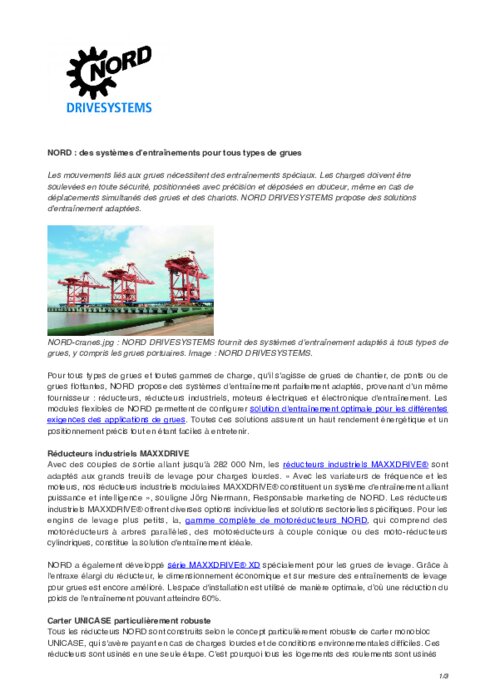 Les mouvements liés aux grues nécessitent des entraînements spéciaux. Les charges doivent être soulevées en toute sécurité, positionnées avec précision et déposées en douceur, même en cas de déplacements simultanés des grues et des chariots. NORD DRIVESYSTEMS propose des solutions d'entraînement adaptées.