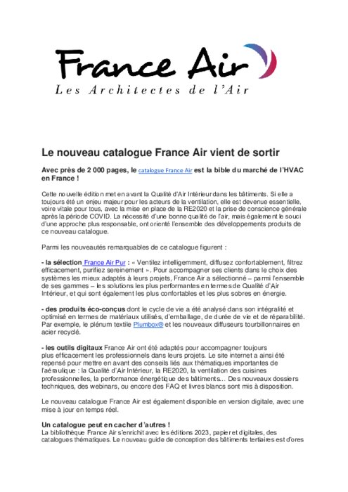 Cette nouvelle édition met en avant la Qualité d’Air Intérieur dans les bâtiments. Si elle a toujours été un enjeu majeur pour les acteurs de la ventilation, elle est devenue essentielle, voire vitale pour tous, avec la mise en place de la RE2020 et la prise de conscience générale après la période COVID. La nécessité d’une bonne qualité de l’air, mais également le souci d’une approche plus responsable, ont orienté l’ensemble des développements produits de ce nouveau catalogue.