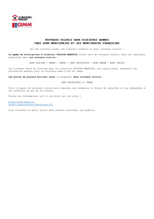 Industriels 20 mars 2024 - 11:41 Qui dit nouvelle année, dit nouvelle tendance et donc nouveaux coloris pour Gimm Menuiseries et Menuiseries Françaises. PDF (43 Ko) Télécharger Crédits : Gimm Menuiseries