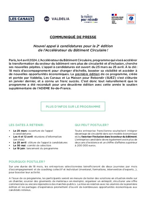Nouvel appel à candidatures pour la 2e édition de l’Accélérateur du Bâtiment Circulaire