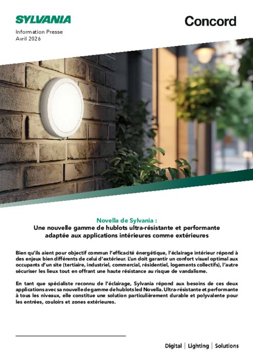 Bien qu’ils aient pour objectif commun l’efficacité énergétique, l’éclairage intérieur répond à des enjeux bien différents de celui d’extérieur. L’un doit garantir un confort visuel optimal aux occupants d’un site, l’autre sécuriser les lieux tout en offrant une haute résistance au risque de vandalisme. En tant que spécialiste reconnu de l’éclairage, Sylvania répond aux besoins de ces deux applications avec sa nouvelle de gamme de hublots led Novella. Ultra-résistante et performante à tous les niveaux, elle constitue une solution particulièrement durable et polyvalente pour les entrées, couloirs et zones extérieures.