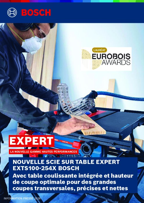 Lors de travaux de découpe de grands panneaux de bois, de poutres, de plans de travail, d’éléments d’agencement… charpentiers, menuisiers et agenceurs sont souvent contraints de réaliser des coupes en plusieurs fois ou de retourner les pièces épaisses pour atteindre la bonne hauteur de coupe. Pour remédier à ces contraintes, Bosch lance dans sa gamme hautes performances EXPERT, la nouvelle scie sur table filaire EXPERT EXTS100-254X.