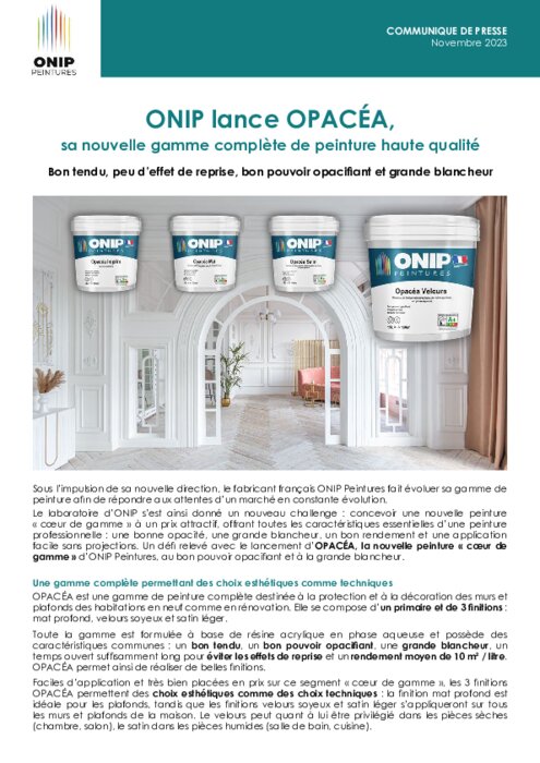Onip lance sa nouvelle gamme de peinture OPACÉA