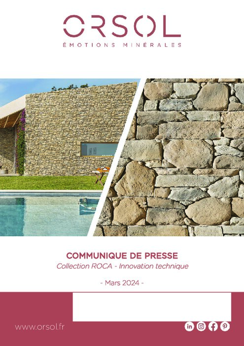 Industriels 26 mars 2024 - 16:15 ORSOL dévoile sa nouvelle collection ROCA, qui combine l’authenticité brute des pierres sèches et la simplicité de pose grâce à une technique d’installation unique et développée par les expertises internes d’Orsol. PDF (1 Mo) Télécharger