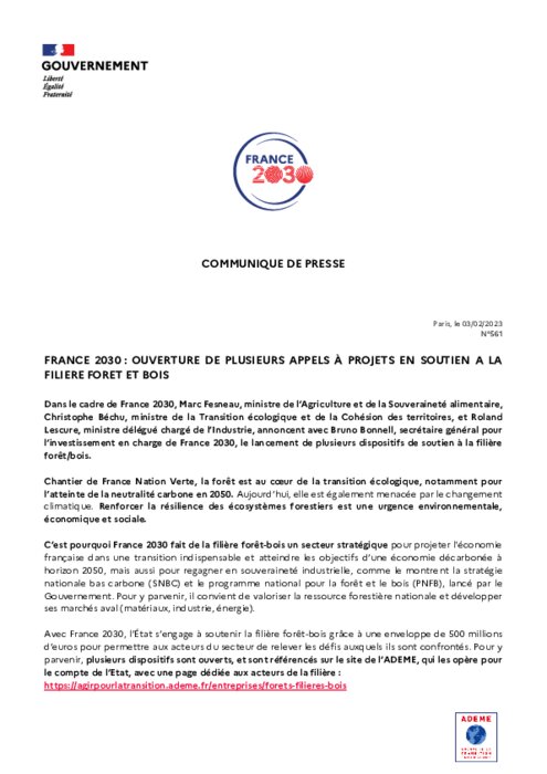 Ouverture de plusieurs APP en soutien à la filière forêt et bois