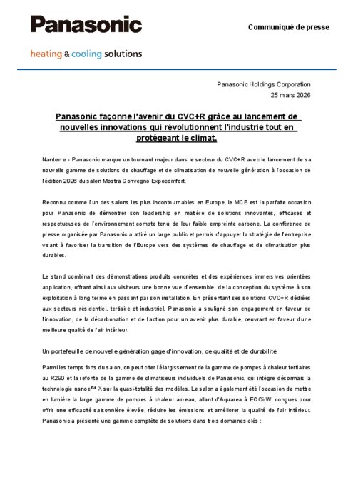 Panasonic marque un tournant majeur dans le secteur du CVC+R avec le lancement de sa nouvelle gamme de solutions de chauffage et de climatisation de nouvelle génération à l’occasion de l’édition 2026 du salon Mostra Convegno Expocomfort.