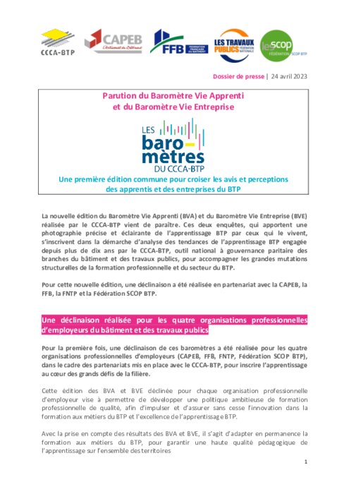 La nouvelle édition du Baromètre Vie Apprenti (BVA) et du Baromètre Vie Entreprise (BVE) réalisée par le CCCA-BTP vient de paraître. Ces deux enquêtes, qui apportent une photographie précise et éclairante de l’apprentissage BTP par ceux qui le vivent, s’inscrivent dans la démarche d’analyse des tendances de l’apprentissage BTP engagée depuis plus de dix ans par le CCCA-BTP.