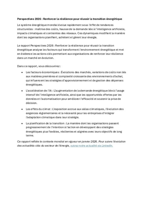 Le système énergétique mondial évolue rapidement sous l’effet de plusieurs dynamiques : maîtrise des coûts, hausse de la demande énergétique liée à l’intelligence artificielle, impacts climatiques et contraintes des infrastructures. Ces évolutions amènent les organisations à adapter progressivement leurs stratégies énergétiques.