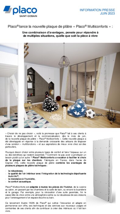 Placo lance la nouvelle plaque de plâtre «Placo Multiconforts»