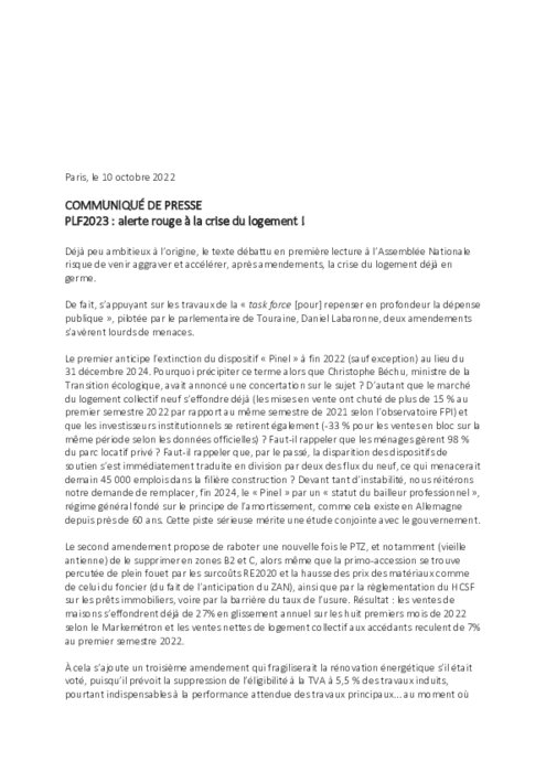 PLF2023 : alerte rouge à la crise du logement (tribune)