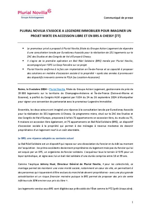 Plurial Novilia, filiale du Groupe Action Logement, gestionnaire de près de 39 000 logements sur le territoire de Champagne-Ardenne et Île-de-France (Seine-et-Marne et Essonne), a profité du Congrès HLM organisé par l’USH du 24 au 26 septembre 2024 à Montpellier pour signer une convention de partenariat avec le promoteur Legendre Immobilier.