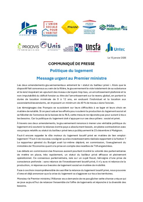 Les deux amendements gouvernementaux enterrent le « statut du bailleur privé ». Alors que le dispositif fait consensus au sein de la filière, le gouvernement le vide totalement de sa substance et le rend inopérant en ajoutant des niveaux de loyers trop bas, un amortissement plafonné et la non-imputabilité du déficit foncier au titre de l’amortissement sur le revenu global, en portant la durée de location minimale de 9 à 12 ans, en excluant l’individuel et la location aux ascendants/descendants, en imposant un minimum de 40 % de travaux dans l’ancien.