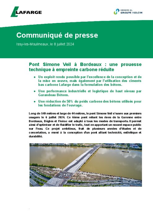 Industriels 08 juillet 2024 - 10:57 Un exploit rendu possible par l’excellence de la conception et de la mise en œuvre, mais également par l’utilisation des ciments bas carbone Lafarge dans la formulation des bétons... PDF (2 Mo) Télécharger