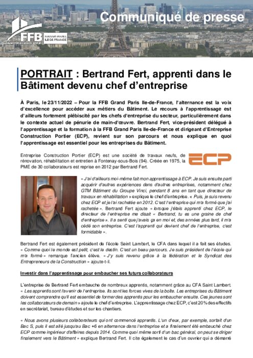l’apprentissage et la formation à la FFB Grand Paris Ile-de-France et dirigeant d’Entreprise