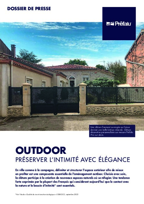 Industriels 15 mars 2024 - 14:29 Que ce soit pour affirmer le caractère d’une terrasse ou pour concevoir un extérieur cohérent avec l’architecture de la maison, les clôtures en aluminium Préfalu renforcent le style de chaque extérieur. PDF (1 Mo) Télécharger