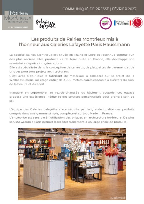 L'équipe des Galeries Lafayette a été séduite par la grande qualité des produits