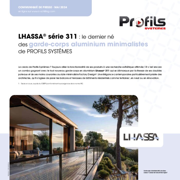 Le credo de Profils Systèmes ? Toujours allier la fonctionnalité de ses produits à une recherche esthétique affirmée ! Et c’est encore un combo gagnant avec le tout nouveau garde-corps en aluminium Lhassa 311 qui se démarque par la finesse de ses doubles poteaux et de ses mains courantes au style minimaliste Factory Design. Une élégance contemporaine particulièrement prisée des architectes, qu’il s’agisse de parer les balcons et terrasses de bâtiments résidentiels comme tertiaires, en neuf ou en rénovation.