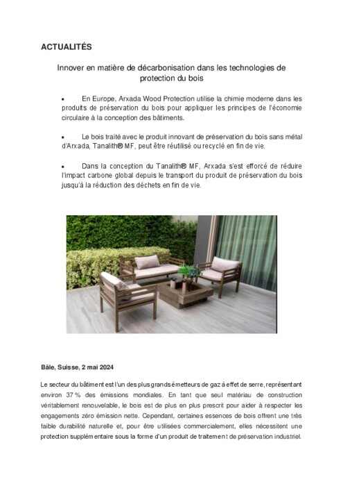 En Europe, Arxada Wood Protection utilise la chimie moderne dans les produits de préservation du bois pour appliquer les principes de l’économie circulaire à la conception des bâtiments. Le bois traité avec le produit innovant de préservation du bois sans métal d’Arxada, Tanalith MF, peut être réutilisé ou recyclé en fin de vie.