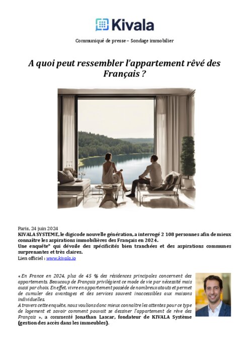 Kivala Systeme, le digicode nouvelle génération, a interrogé 2 108 personnes afin de mieux connaître les aspirations immobilières des Français en 2024. Une enquête qui dévoile des spécificités bien tranchées et des aspirations communes surprenantes et très claires.