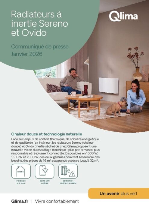 Face aux enjeux de confort thermique, de sobriété énergétique et de qualité de l’air intérieur, les radiateurs Sereno (chaleur douce) et Ovido (inertie sèche) de chez Qlima proposent une nouvelle vision du chauffage électrique : plus performante, plus responsable et résolument connectée. Disponibles en 1000 W, 1500 W et 2000 W, ces deux gammes couvrent l’ensemble des besoins, des pièces de 16 m² aux grands espaces jusqu’à 32 m².