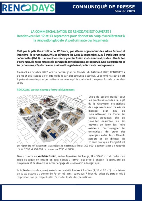 Interclima, le Forum RenoDays se déroulera les 12 et 13 septembre 2023 à Paris Expo Porte