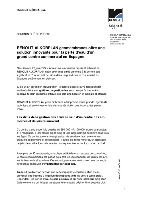 Renolit Alkorplan geomembranes offre une solution innovante pour un grand centre commercial en Espagne