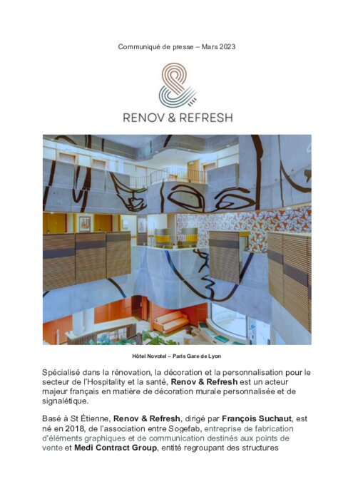 Basé à St Étienne, Renov & Refresh, dirigé par François Suchaut, est