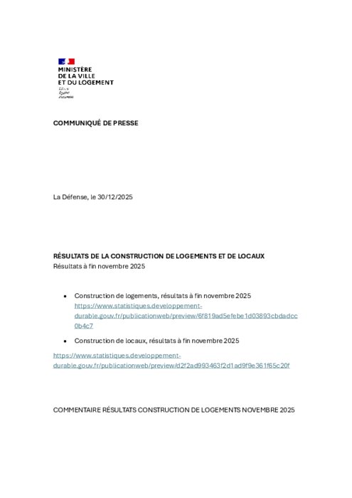 En novembre 2025, les autorisations de logements poursuivent leur baisse par rapport à octobre (- 3,8 % en données corrigées des variations saisonnières et des jours ouvrables), pour s’établir à 31 028 unités. Ce repli prolonge celui d’octobre (- 4,1 %), après le rebond de septembre (+ 6,8 %). Les autorisations marquent le pas au second semestre après le regain d’activité observé en début d’année, qui succédait à deux années défavorables.