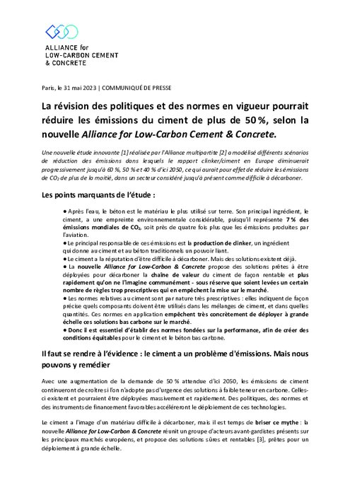 Une nouvelle étude innovante réalisée par l'Alliance multipartite a modélisé différents scénarios de réduction des émissions dans lesquels le rapport clinker/ciment en Europe diminuerait progressivement jusqu'à 60 %, 50 % et 40 % d'ici 2050, ce qui aurait pour effet de réduire les émissions de CO2 de plus de la moitié, dans un secteur considéré jusqu'à présent comme difficile à décarboner.