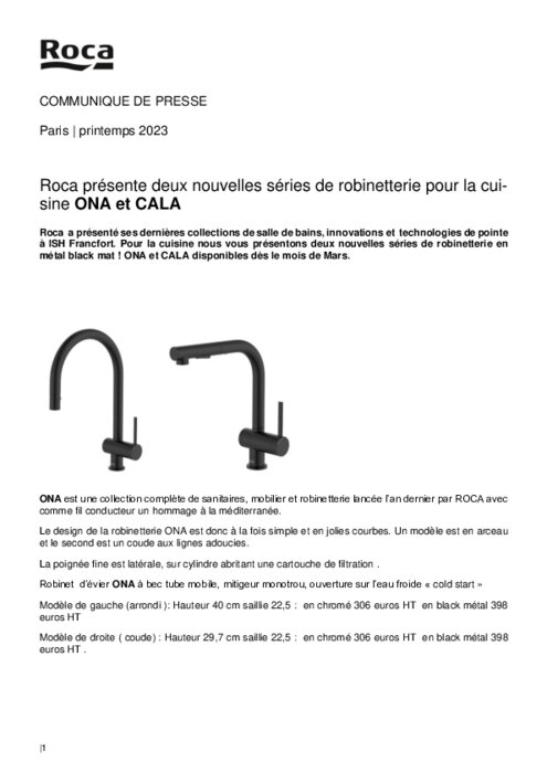 robinetterie en métal black mat ! ONA et CALA disponibles dès le mois de Mars.