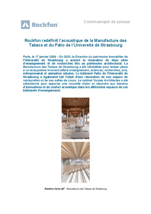 Les bureaux, les salles de laboratoires et de cours bénéficient des performances acoustiques de Rockfon Ekla en modulaires ou en îlots dans les cadres Chicago Metallic Infinity. Les zones de circulation, quant à elles, bénéficient de solutions Rockfon en panneaux-bandes, ce qui assure continuité et tranquillité.