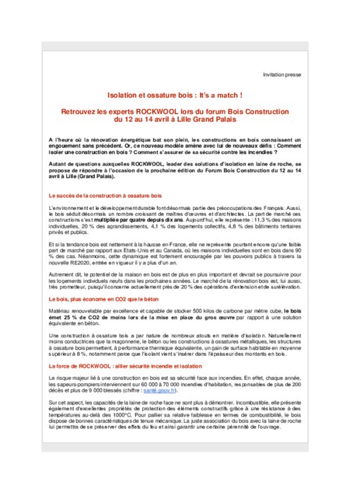 A l’heure où la rénovation énergétique bat son plein, les constructions en bois connaissent un engouement sans précédent. Or, ce nouveau modèle amène avec lui de nouveaux défis : Comment isoler une construction en bois ? Comment s’assurer de sa sécurité contre les incendies ? Autant de questions auxquelles ROCKWOOL, leader des solutions d’isolation en laine de roche, se propose de répondre à l’occasion de la prochaine édition du Forum Bois Construction du 12 au 14 avril à Lille (Grand Palais).