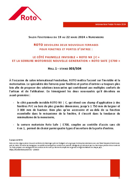 À l’occasion du salon international Fensterbau, ROTO mettra l’accent sur l’invisible et la motorisation. Le spécialiste des ferrures pour fenêtres et portes d’entrée va toujours plus loin afin de proposer des solutions innovantes qui contribuent aux multiples conforts de l’artisan et de l’utilisateur. En témoignent les deux nouveautés qu’il dévoilera en avant-première...