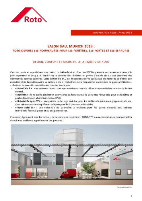 C’est sur un stand reproduisant une maison individuelle et un hôtel que ROTO a présenté ses dernières nouveautés pour optimiser le design, le confort et la sécurité des fenêtres et portes d’entrée mais aussi présenter des nouveautés pour les serrures. Cette édition de BAU est l’occasion pour le spécialiste allemand de confirmer son expertise et de faire découvrir aux professionnels - industriels de la menuiserie, entreprises de pose, architectes...