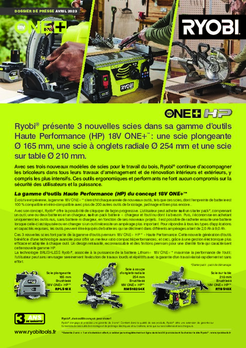 Ryobi présente 3 nouvelles scies dans sa gamme d'outils Haute Performance
