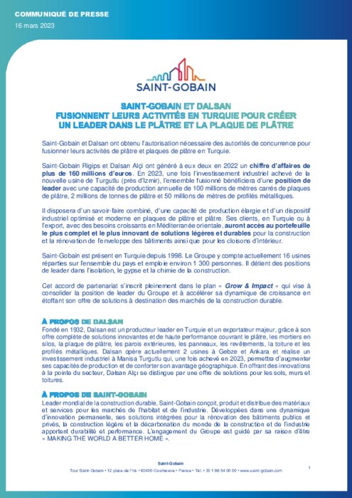Saint-Gobain Rigips et Dalsan Alçi ont généré à eux deux en 2022 un chiffre d’affaires de