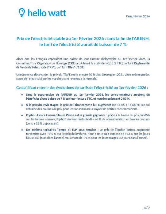 Sans la fin de l'ARENH le tarif de l'électricité aurait dû baisser de -7 % au 1er février