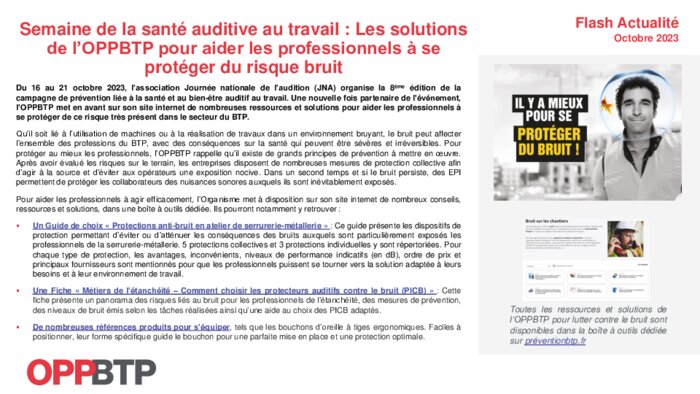 Une nouvelle fois partenaire de l’événement, l’OPPBTP met en avant sur son site internet de nombreuses ressources et solutions pour aider les professionnels à se protéger de ce risque très présent dans le secteur du BTP.