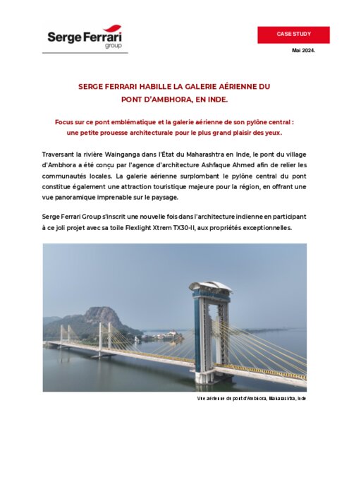 Traversant la rivière Wainganga dans l’État du Maharashtra en Inde, le pont du village d’Ambhora a été conçu par l’agence d’architecture Ashfaque Ahmed afin de relier les communautés locales. La galerie aérienne surplombant le pylône central du pont constitue également une attraction touristique majeure pour la région, en offrant une vue panoramique imprenable sur le paysage.
