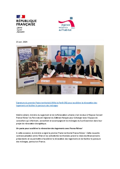 Valérie Létard, ministre du Logement et de la Rénovation urbaine s'est rendue à l'Espace Conseil France Rénov' du Parc naturel régional du Gâtinais français pour échanger avec l'équipe de conseillers qui informent, conseillent et accompagnent les ménages du Sud Essonnien dans leur projet de rénovation énergétique.